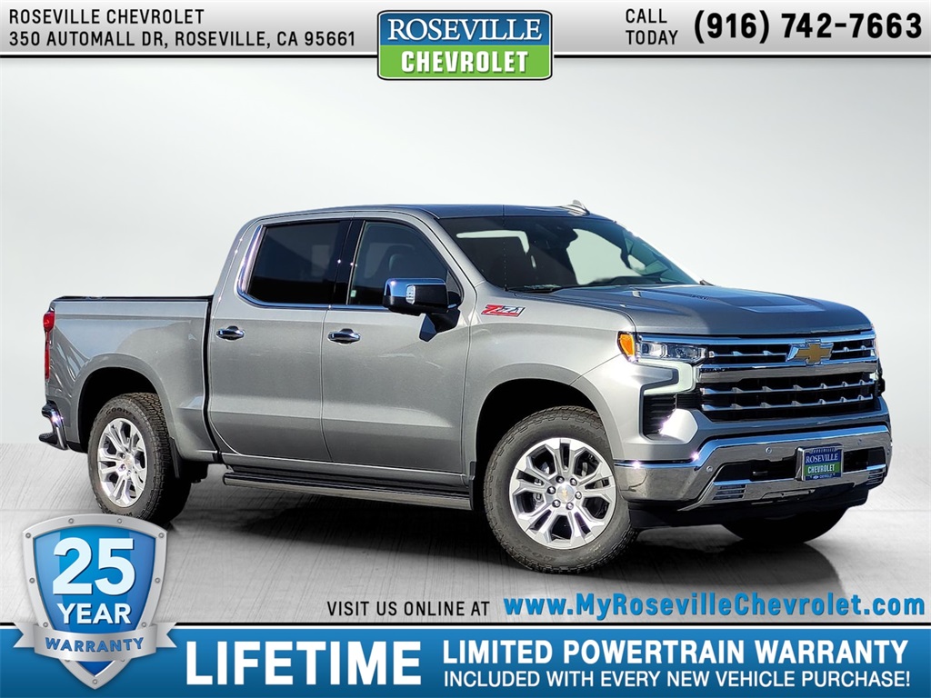 Sterling Gray Metallic 2026 Chevrolet Silverado 1500 LTZ 4WD 10-Speed Automatic EcoTec3 6.2L V8 10-Speed Automatic, 4WD, Black Leather.