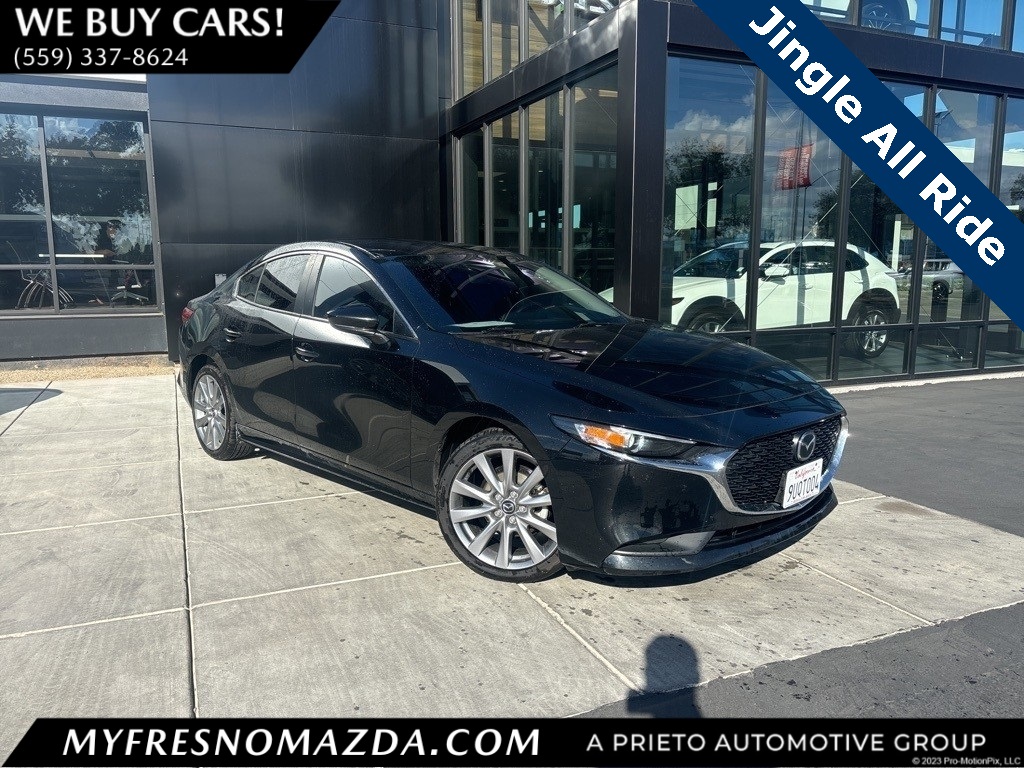 This Fresno Mazda / Mitsubishi — Mazda Certified Pre-Owned 2023 Jet Black Mazda Mazda3 2.5 S Select Package FWD is well equipped and includes these features and benefits: 4-Wheel Disc Brakes, 8 Speakers, ABS brakes, Air Conditioning, Alloy wheels, AM/FM radio, AppLink/Apple CarPlay and Android Auto, Auto High-beam Headlights, Automatic temperature control, Brake assist, Bumpers: body-color, Compass, Delay-off headlights, Driver door bin, Driver vanity mirror, Dual front impact airbags, Dual front side impact airbags, Electronic Stability Control, Emergency communication system: Mazda Connected Services (3-year complimentary trial included), Exterior Parking Camera Rear, Front anti-roll bar, Front Bucket Seats, Front Center Armrest, Front dual zone A/C, Front reading lights, Front Sport Bucket Seats, Front wheel independent suspension, Fully automatic headlights, Illuminated entry, Knee airbag, Leather Shift Knob, Leather steering wheel, Leatherette Seat Trim, Low tire pressure warning, MAZDA CONNECT Infotainment System, Mazda Navigation System, Occupant sensing airbag, Outside temperature display, Overhead airbag, Overhead console, Panic alarm, Passenger door bin, Passenger vanity mirror, Power door mirrors, Power steering, Power windows, Radio data system, Radio: AM/FM/HD Audio System, Rain sensing wipers, Rear seat center armrest, Rear side impact airbag, Rear window defroster, Remote keyless entry, Speed control, Speed-sensing steering, Split folding rear seat, Steering wheel mounted audio controls, Tachometer, Telescoping steering wheel, Tilt steering wheel, Traction control, Trip computer, Turn signal indicator mirrors, Variably intermittent wipers, and Wheels: 18″ x 7J Aluminum Alloy. Backup Camera, Bluetooth®, Nonsmoker, Local Trade.
