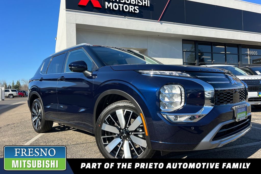 This Fresno Mazda / Mitsubishi — 2026 Blue Mitsubishi Outlander SEL FWD is well equipped and includes these features and benefits: 3rd Row seats: split-bench, 4-Wheel Disc Brakes, 8 Speakers, ABS brakes, Air Conditioning, Alloy wheels, AM/FM radio: SiriusXM, Android Auto & Apple CarPlay, Auto High-beam Headlights, Auto-dimming Rear-View mirror, Automatic temperature control, Brake assist, Bumpers: body-color, Compass, Delay-off headlights, Driver door bin, Driver vanity mirror, Dual front impact airbags, Dual front side impact airbags, Electronic Stability Control, Emergency communication system: Mitsubishi Connect w/ 24-month trial, Exterior Parking Camera Rear, Four wheel independent suspension, Front anti-roll bar, Front Bucket Seats, Front Center Armrest w/Storage, Front dual zone A/C, Front fog lights, Front reading lights, Fully automatic headlights, Garage door transmitter: HomeLink, Heated and Ventilated Front Bucket Seats, Heated door mirrors, Heated front seats, Heated rear seats, Heated steering wheel, Illuminated entry, Knee airbag, Leather Appointed Seating Surfaces, Leather Shift Knob, Leather steering wheel, Low tire pressure warning, Memory seat, Navigation System, Occupant sensing airbag, Outside temperature display, Overhead airbag, Overhead console, Panic alarm, Passenger door bin, Passenger vanity mirror, Power door mirrors, Power driver seat, Power Liftgate, Power moonroof: Panoramic, Power passenger seat, Power steering, Power windows, Radio data system, Radio: AM/FM 12.3″ Navigation with Smartphone-Link, Rain sensing wipers, Rear air conditioning, Rear anti-roll bar, Rear seat center armrest, Rear side impact airbag, Rear window defroster, Rear window wiper, Reclining 3rd Row seat, Remote keyless entry, Security system, Semi-Aniline Leather Appointed Seating Surfaces, Speed control, Speed-Sensitive Wipers, Split folding rear seat, Spoiler, Steering wheel mounted audio controls, Tachometer, Telescoping steering wheel, Tilt steering wheel, Traction control, Trip computer, Turn signal indicator mirrors, Variably intermittent wipers, Ventilated front seats, and Wheels: 20″ Two-Tone Alloy.